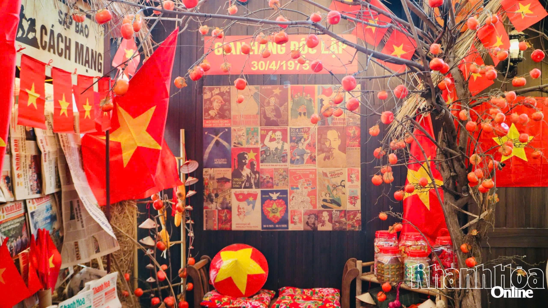 Chào mừng kỷ niệm 51 năm Ngày Giải phóng miền Nam, thống nhất đất nước (30-4-1975 - 30-4-2026), nhiều quán cà phê tại Nha Trang đã trang trí nổi bật với cờ đỏ sao vàng, băng rôn và các biểu tượng lịch sử, thu hút đông đảo người dân và du khách, đặc biệt là giới trẻ đến tham quan, chụp ảnh.