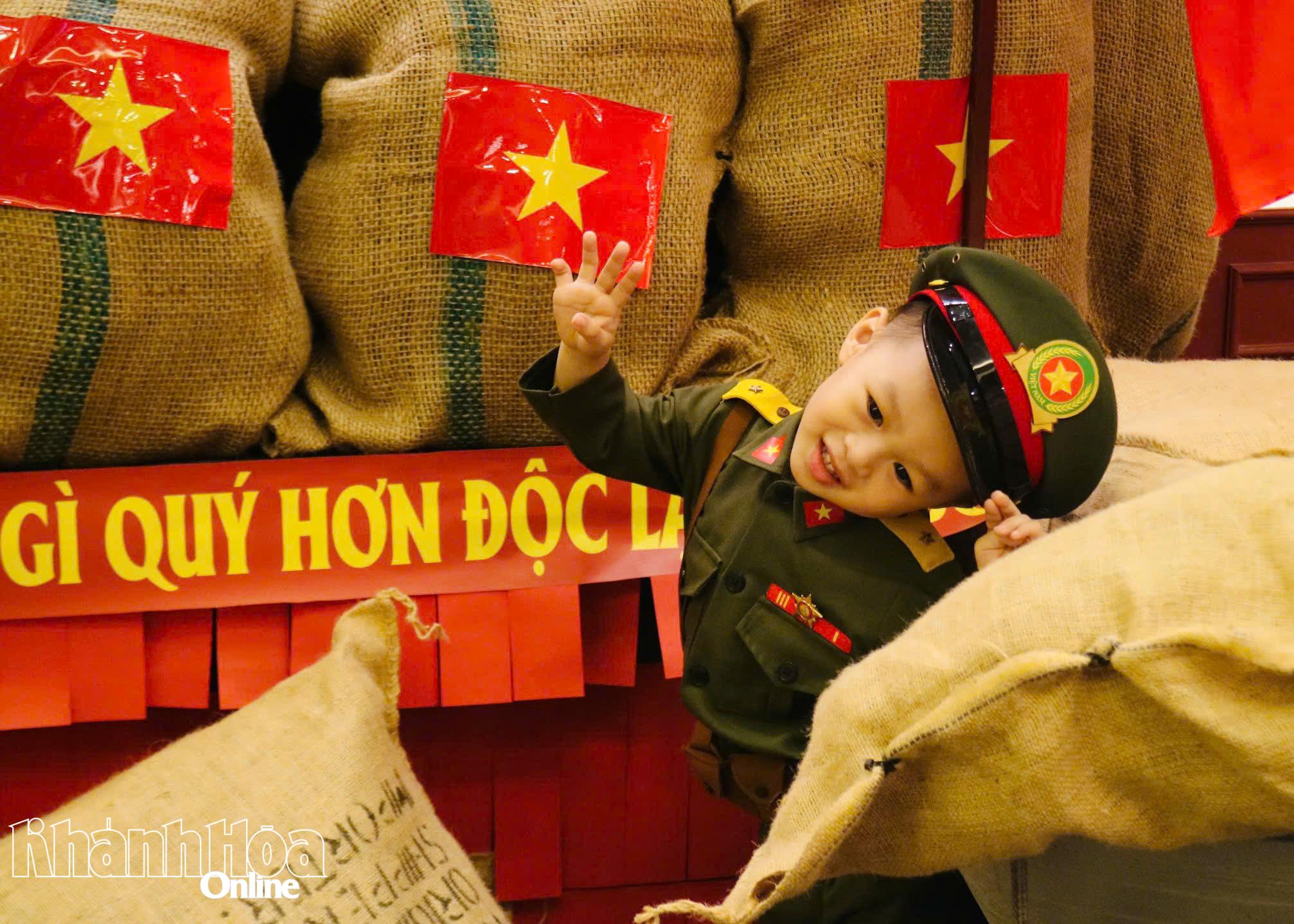 Bé Thiên Vũ (3 tuổi) được ba mẹ chụp ảnh.