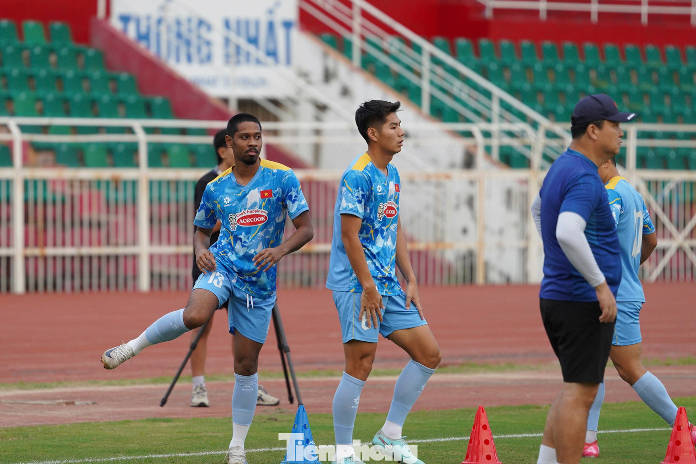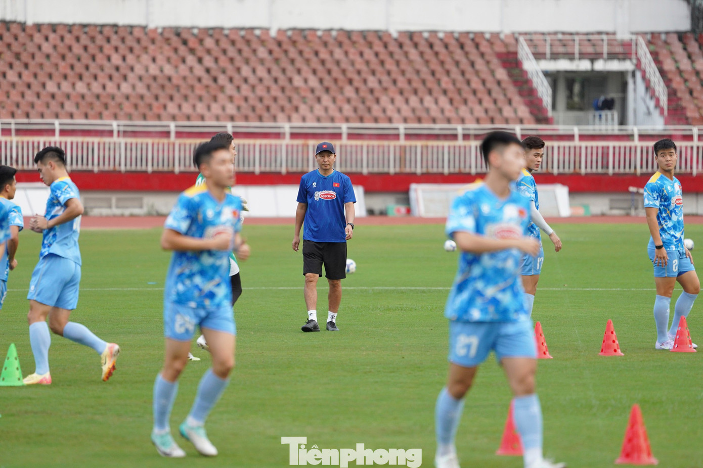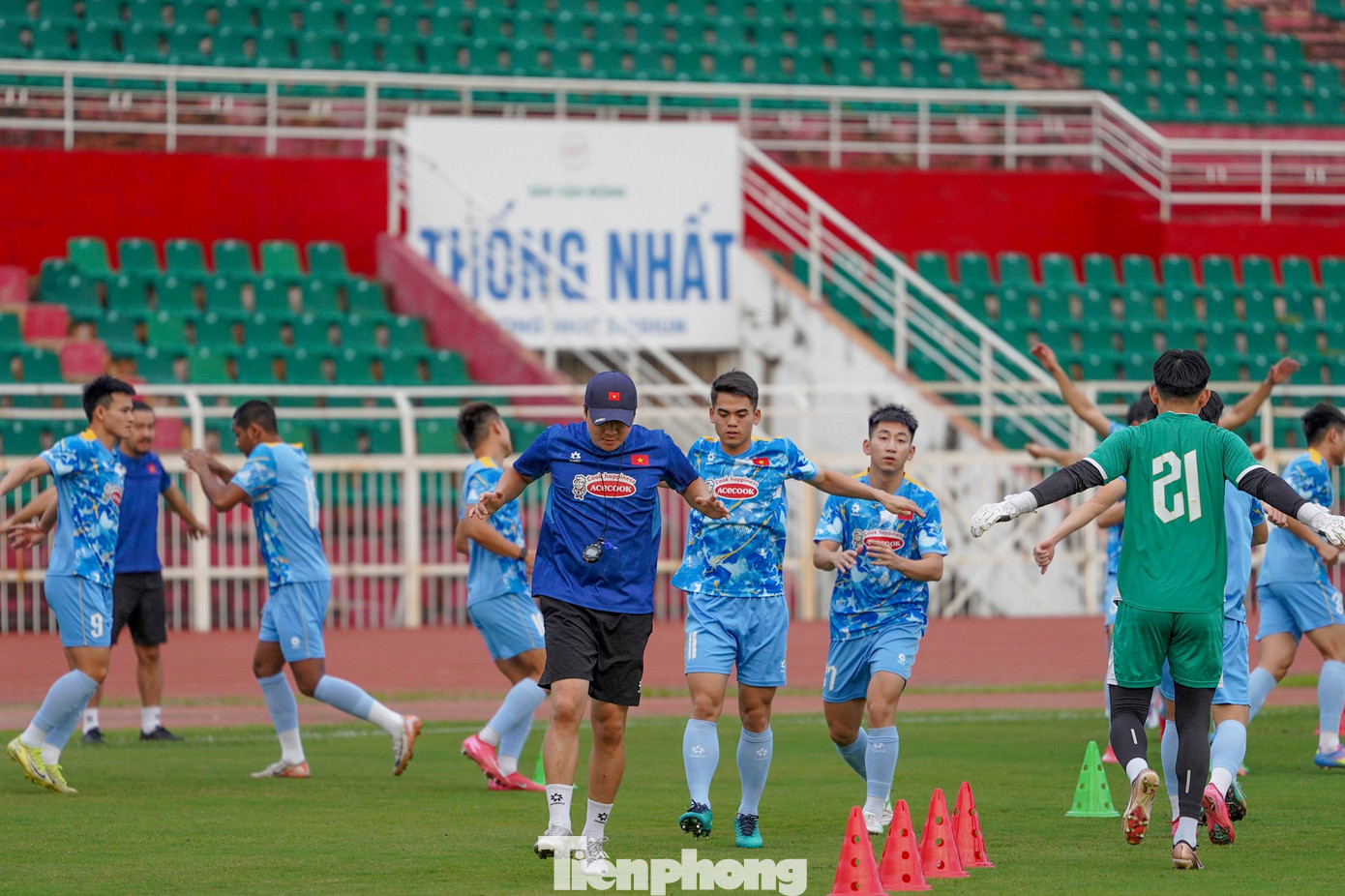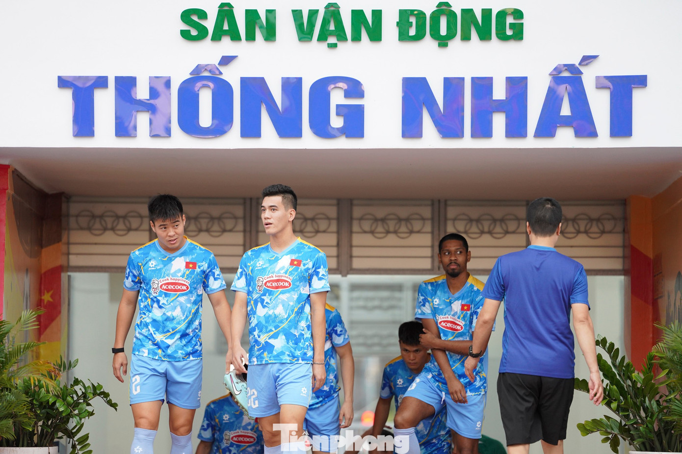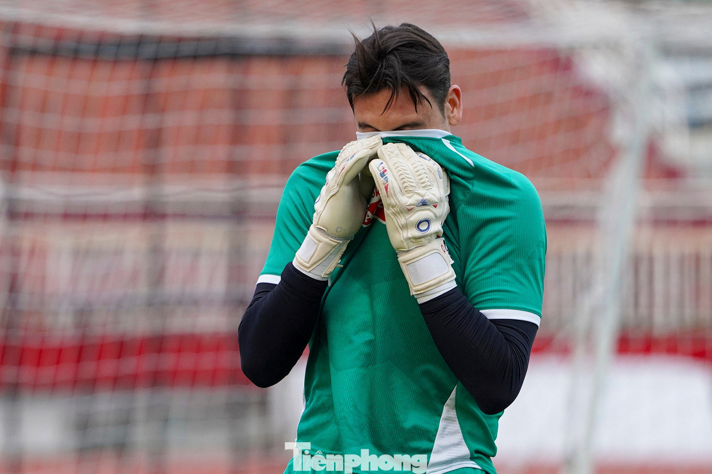 Văn Lâm, sau vài sai lầm đáng tiếc ở lượt đi trên sân Gò Đậu, tỏ ra đặc biệt tập trung. Anh chủ động trao đổi thêm với HLV Lee Won-jae sau mỗi tình huống, điều chỉnh nhịp ra bóng và khả năng chuyền một chạm. Trung Kiên và Văn Việt cũng cho thấy sự tiến bộ rõ rệt, phối hợp nhịp nhàng trong các bài phản xạ chân và phát bóng dài.