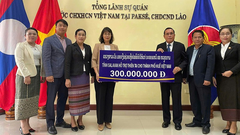 Tỉnh Salavan hỗ trợ thành phố Huế 300 triệu đồng khắc phục hậu quả thiên tai. (Ảnh: Cộng tác viên)