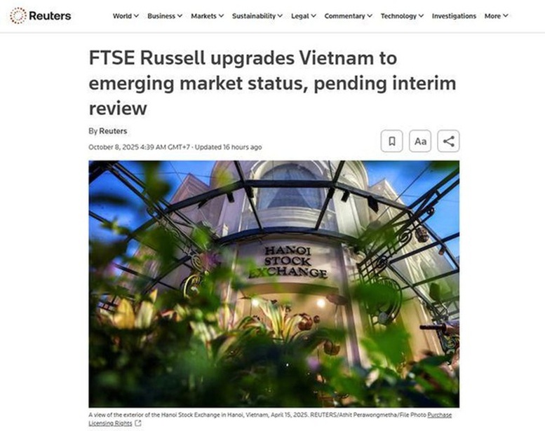 Theo Financial Times, Việt Nam đã nằm trong danh sách theo dõi nâng hạng của FTSE Russell từ năm 2018 và đã thực hiện hàng loạt cải cách thị trường để đáp ứng đủ điều kiện. Việt Nam đã nới lỏng đáng kể các quy định nhằm tạo điều kiện thuận lợi hơn cho các nhà đầu tư nước ngoài giao dịch và bãi bỏ một số giới hạn sở hữu nước ngoài. Bất chấp đợt bán tháo mạnh sau khi Tổng thống Mỹ Donald Trump áp dụng thuế quan, chỉ số chứng khoán Thành phố Hồ Chí Minh vẫn tăng 35% trong năm nay, trở thành một trong những thị trường tăng trưởng tốt nhất ở châu Á. Chỉ số này tăng 1,7% trong phiên giao dịch sớm ngày 8/10 sau thông báo nâng hạng.