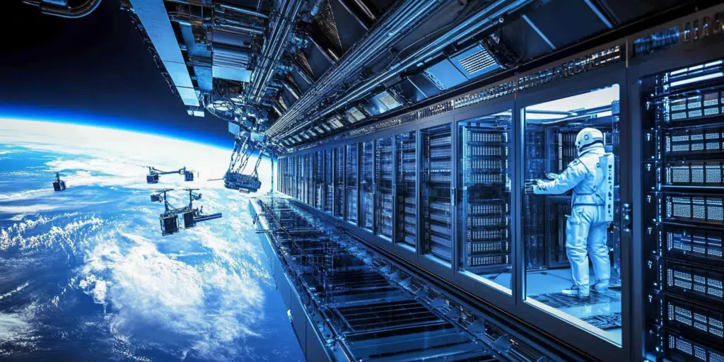 Lợi thế lớn nhất của không gian nằm ở nguồn điện: Có thể đặt vệ tinh trên các mặt phẳng quỹ đạo luôn được Mặt trời chiếu sáng, không bao giờ rơi vào bóng tối của Trái đất. Đồng thời, cũng không cần tới hệ thống điều hòa làm mát.