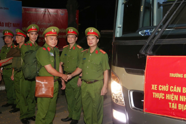 Đại tá Nguyễn Thành Long bày tỏ tin tưởng, cán bộ, học viên tham gia đoàn công tác đợt này sẽ phát huy được phẩm chất của người học viên an ninh, vận dụng kiến thức đã được học tập vào thực tiễn. Mỗi cán bộ, học viên phải luôn đảm bảo chấp hành nghiêm kỷ luật, mệnh lệnh công tác, thực hiện những nhiệm vụ phối hợp chặt chẽ với chính quyền địa phương và đặt sự an toàn của nhân dân lên hàng đầu...