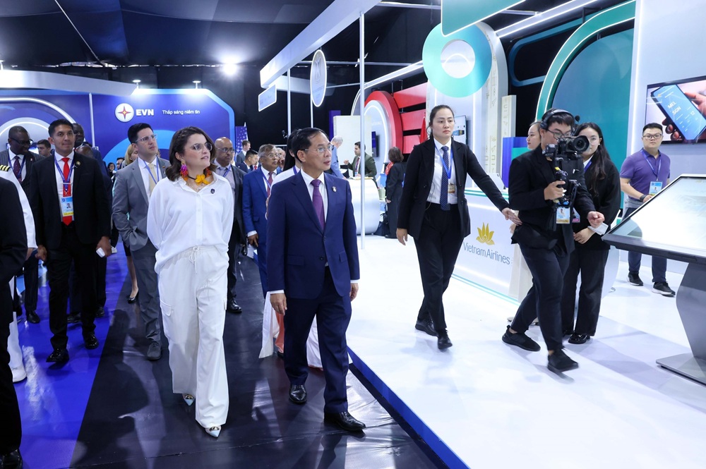 Các Trưởng đoàn dự Lễ mở ký Công ước Hà Nội tham quan Triển lãm công nghệ