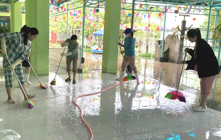 Để sớm ổn định hoạt động dạy và học, các cơ sở giáo dục huy động lực lượng tại chỗ tham gia dọn dẹp vệ sinh trường lớp theo phương châm “nước rút đến đâu, bùn hết đến đó”, bảo đảm môi trường sạch sẽ, an toàn trước khi đón học sinh trở lại trường. Trong quá trình khắc phục, các đơn vị cần đặc biệt lưu ý an toàn lao động, điện lưới và phòng tránh tai nạn sông nước.