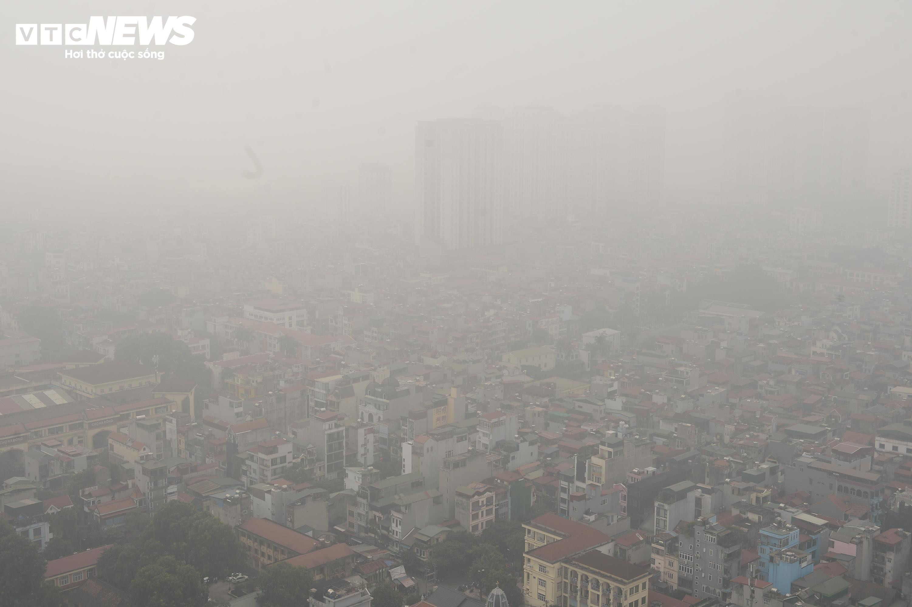 Hà Nội chìm trong bụi mịn và sương mù trong sáng 2/12. (Ảnh: Viên Minh)