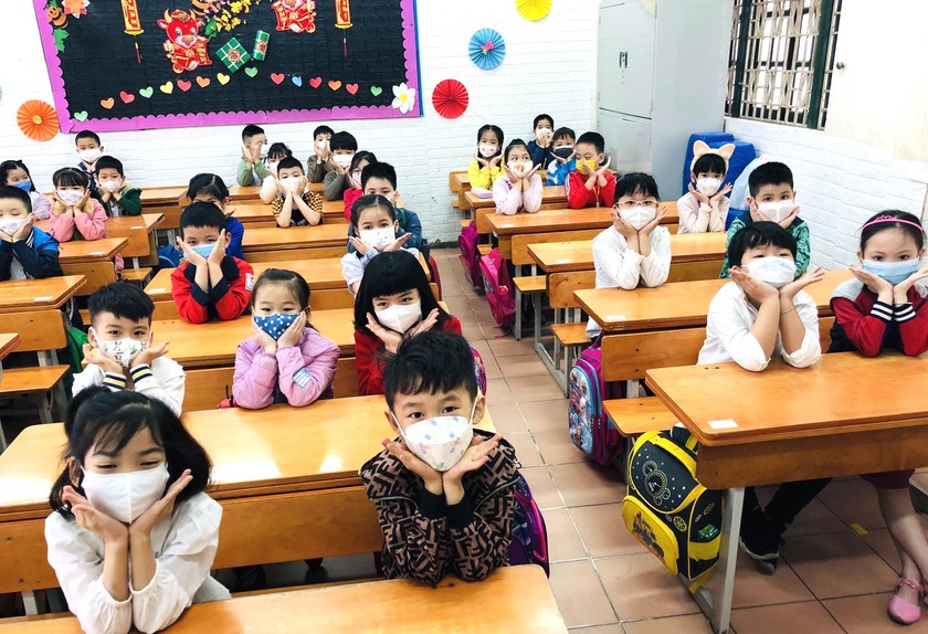 Học sinh lớp 1H Trường Tiểu học Cầu Diễn (Hà Nội). Ảnh: NH