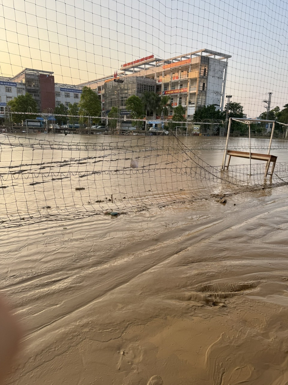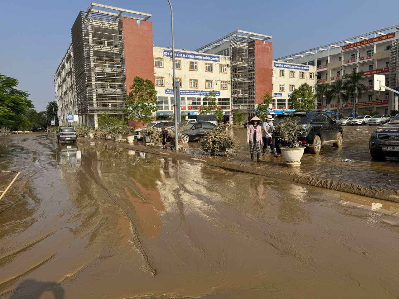 Sân trường THPT Chuyên Thái Nguyên ngập bùn sau lũ.