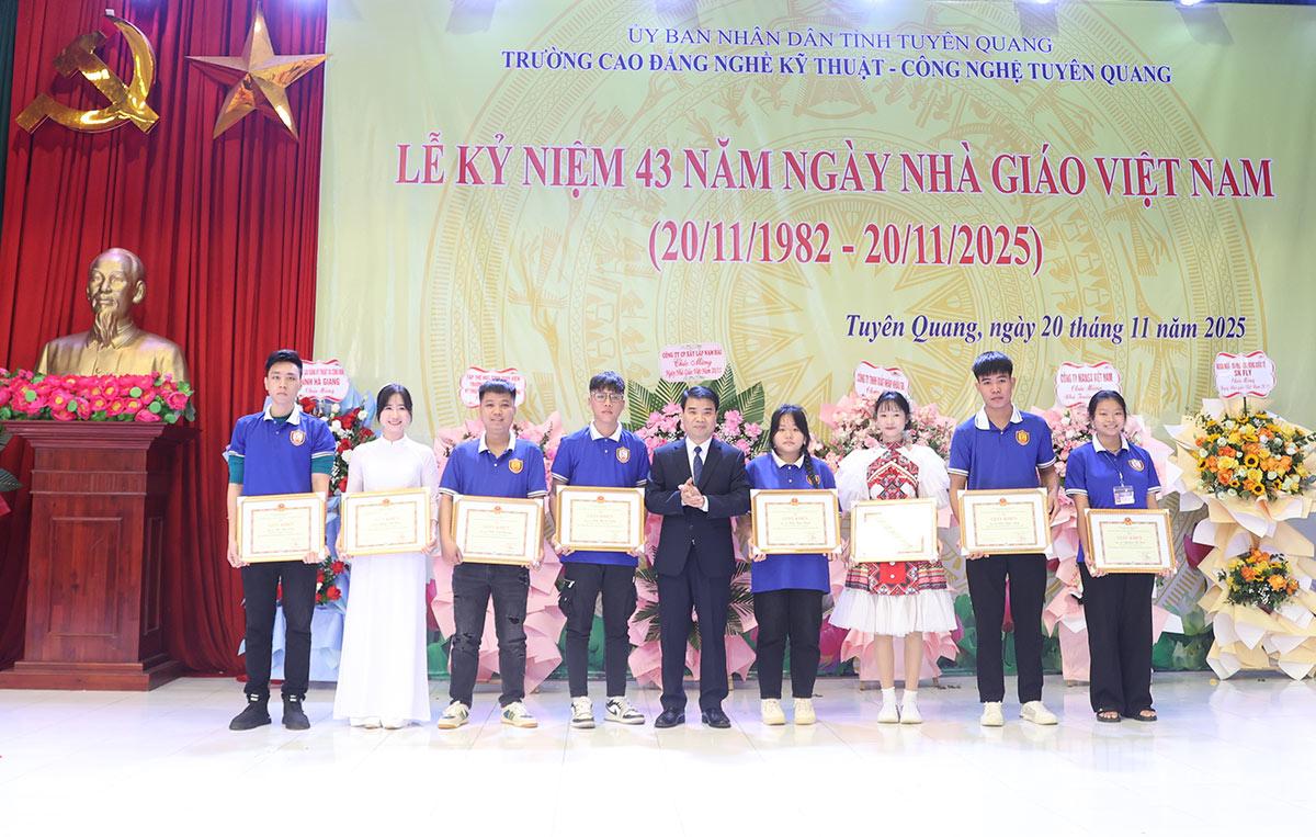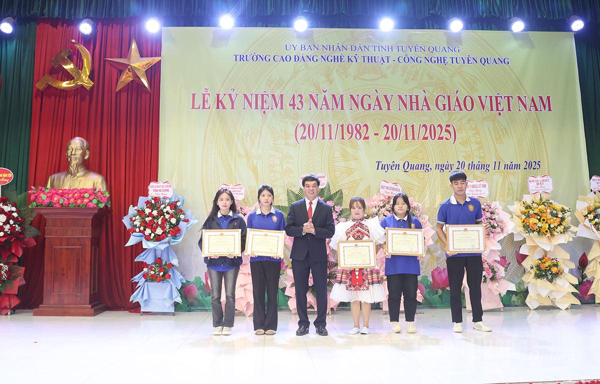 Đại diện nhà trường trao Giấy khen cho học sinh, sinh viên có thành tích xuất sắc trong phong trào thi đua yêu nước đợt 2 năm 2025.