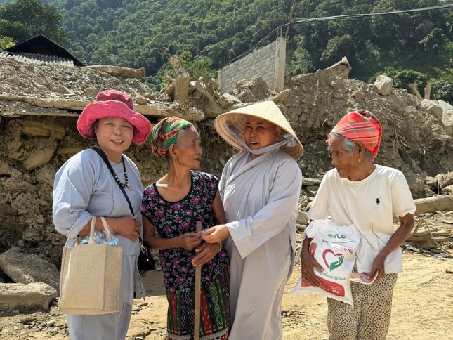 Theo đó, Ni sư Thích nữ Nguyên Xuân và đoàn đã trao 450 phần quà tại bản Ta Đo, xã Mường Típ, tỉnh Nghệ An và đoàn đã trao trực tiếp 750 phần quà đến các gia đình bị thiệt hại tại xã Phú Bình, tỉnh Thái Nguyên.
