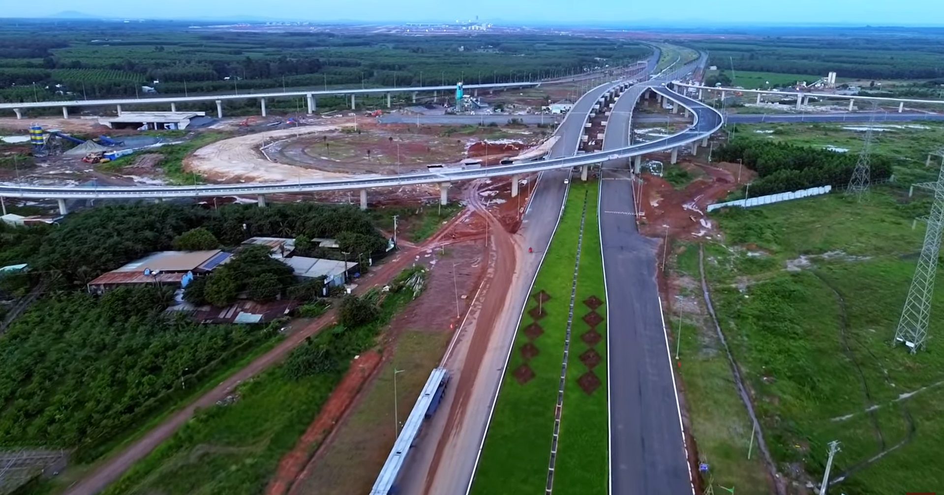 Sau khi qua nút giao cao tốc Biên Hòa - Vũng Tàu, tuyến T1 chạy thẳng vào sân bay Long Thành. Cũng từ nút giao này, các phương tiện từ sân bay Long Thành có thể đi về nhiều hướng, đến các địa phương ở Đông và Tây Nam Bộ Ảnh: Gió Quê