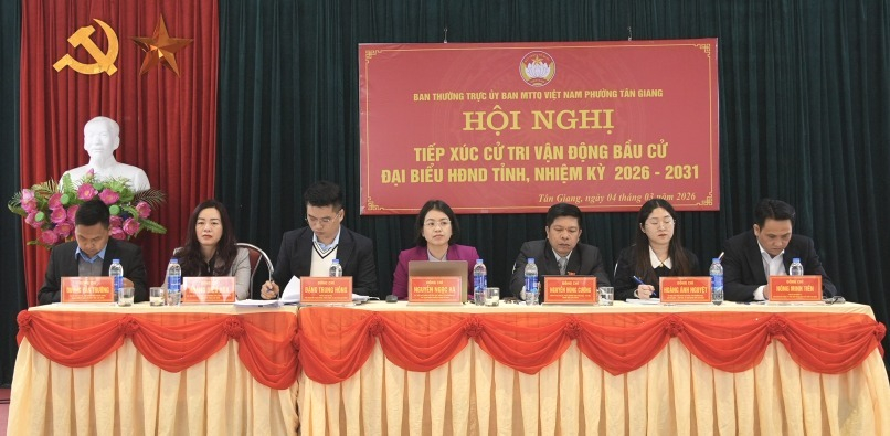 Các ứng cử viên đại biểu HĐND tỉnh, nhiệm kỳ 2026 - 2031 thuộc đơn vị bầu cử số 2 tiếp xúc cử tri, vận động bầu cử tại phường Tân Giang và phường Nùng Trí Cao.