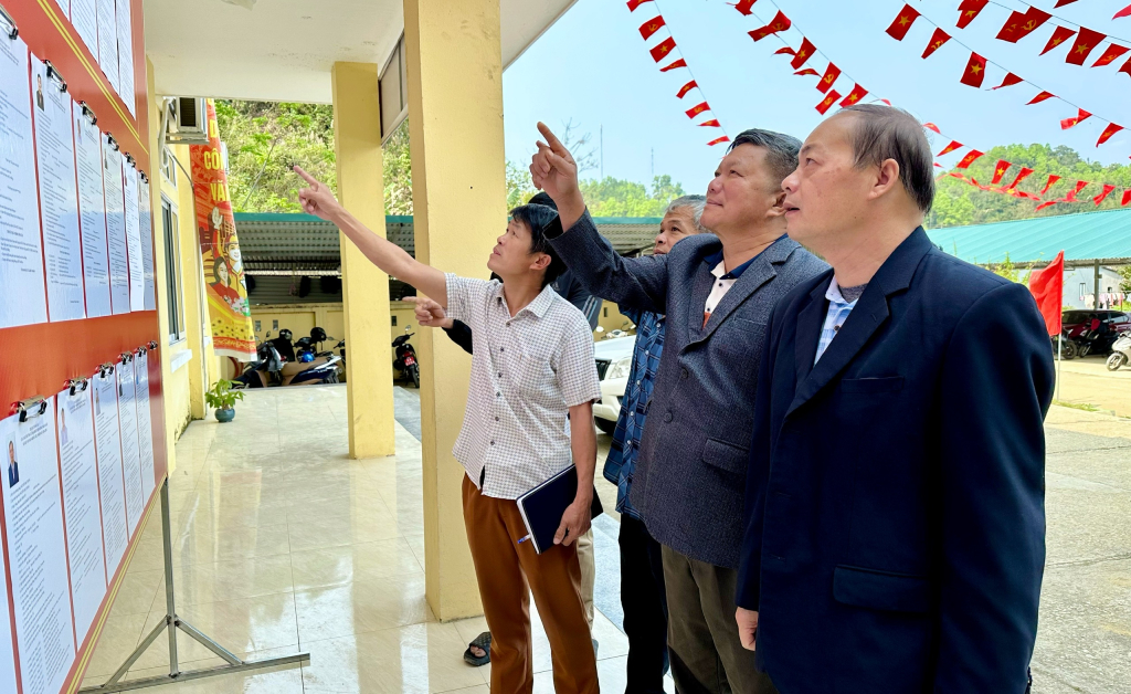 Đoàn kiểm tra Ủy ban Bầu cử tỉnh kiểm tra cơ sở, vật chất tại khu vực bỏ phiếu số 4, xã Lũng Nặm.