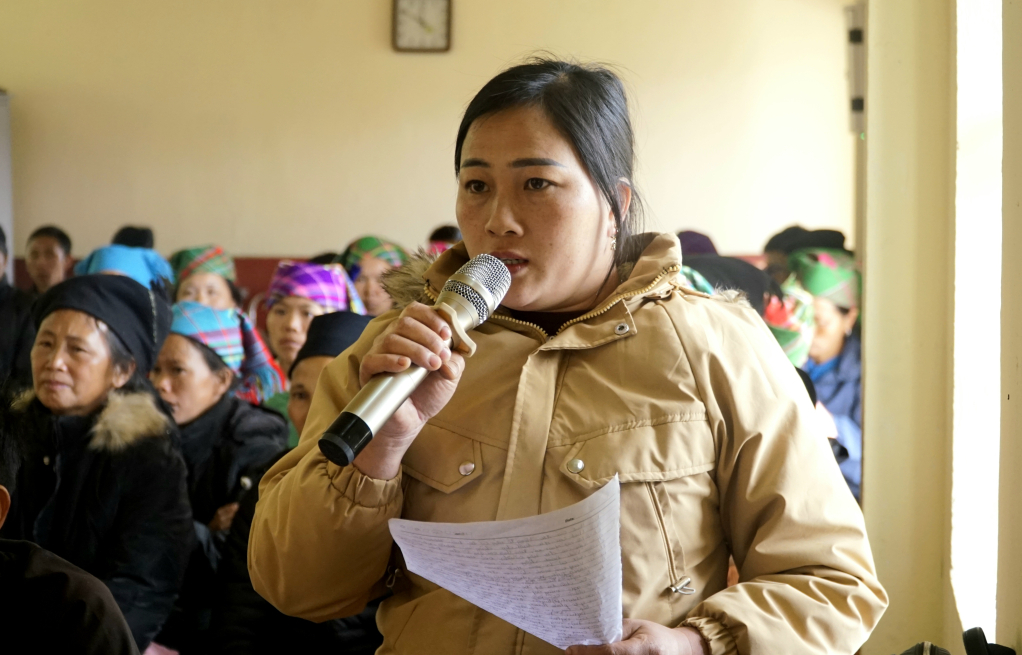 Cử tri xã Khánh Xuân phát biểu ý kiến tại hội nghị.