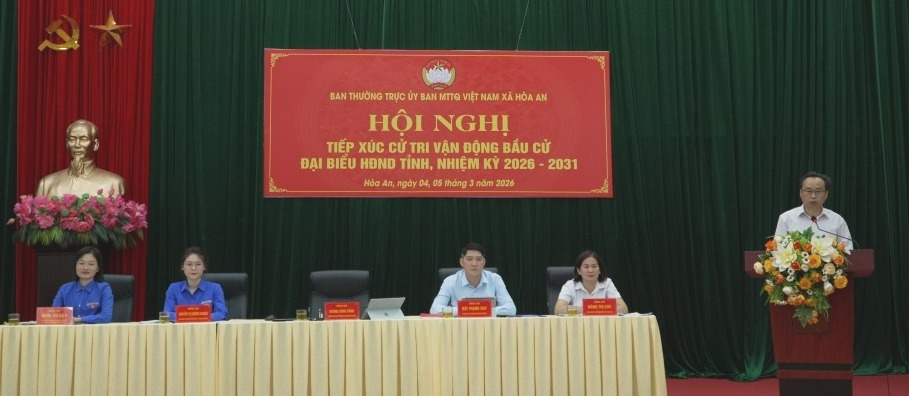 Tại xã Hòa An, Ban Thường trực Ủy ban MTTQ Việt Nam xã tổ chức Hội nghị tiếp xúc cử tri, vận động bầu cử đại biểu HĐND tỉnh, nhiệm kỳ 2026 - 2031thuộc đơn vị bầu cử số 3.
