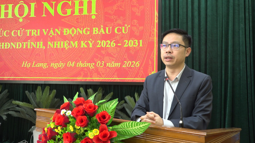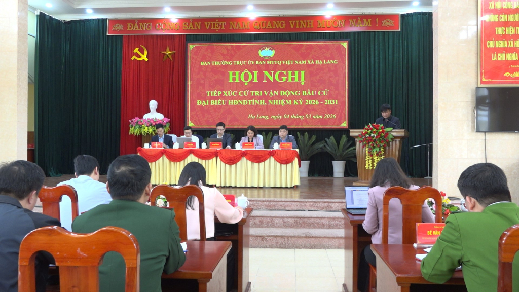 Tại xã Hạ Lang, Ban Thường trực Ủy ban MTTQ xã tổ chức hội nghị tiếp xúc cử tri, vận động bầu cử đại biểu HĐND tỉnh, khóa XVIII, nhiệm kỳ 2026 - 2031 thuộc đơn vị bầu cử số 11.