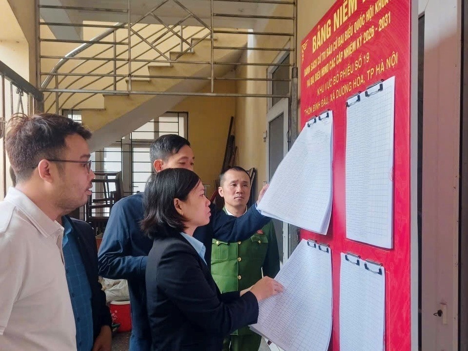 Thường trực HĐND xã Dương Hòa giám sát, kiểm tra công tác chuẩn bị bầu cử đại biểu Quốc hội khóa XVI và đại biểu HĐND các cấp nhiệm kỳ 2026 - 2031 tại Đơn vị bầu cử số 4 Ảnh: Phượng Nguyễn