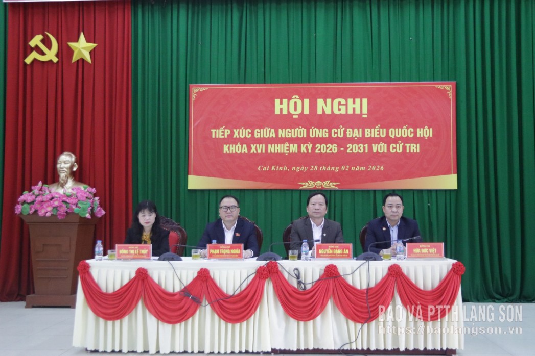 Các ứng cử viên tại hội nghị tiếp xúc cử tri, vận động bầu cử tại xã Cai Kinh