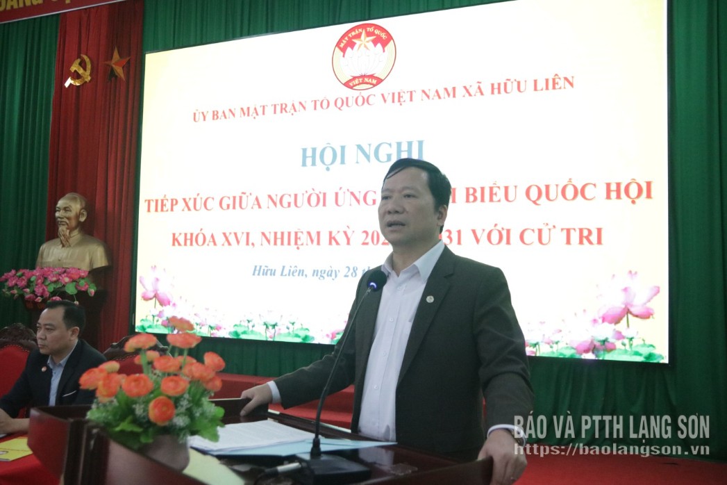 Ông Nguyễn Đặng Ân, Tỉnh ủy viên, Giám đốc Sở Văn hóa, Thể thao và Du lịch tỉnh Lạng Sơn trao đổi làm rõ một số kiến nghị của cử tri xã Hữu Liên