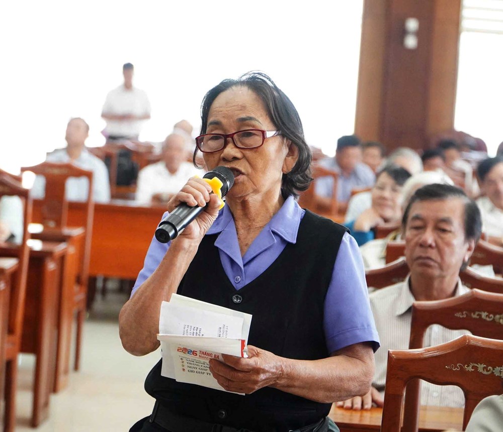 Tại buổi tiếp xúc vận động bầu cử, cử tri nêu kiến nghị với các đại biểu ứng cử