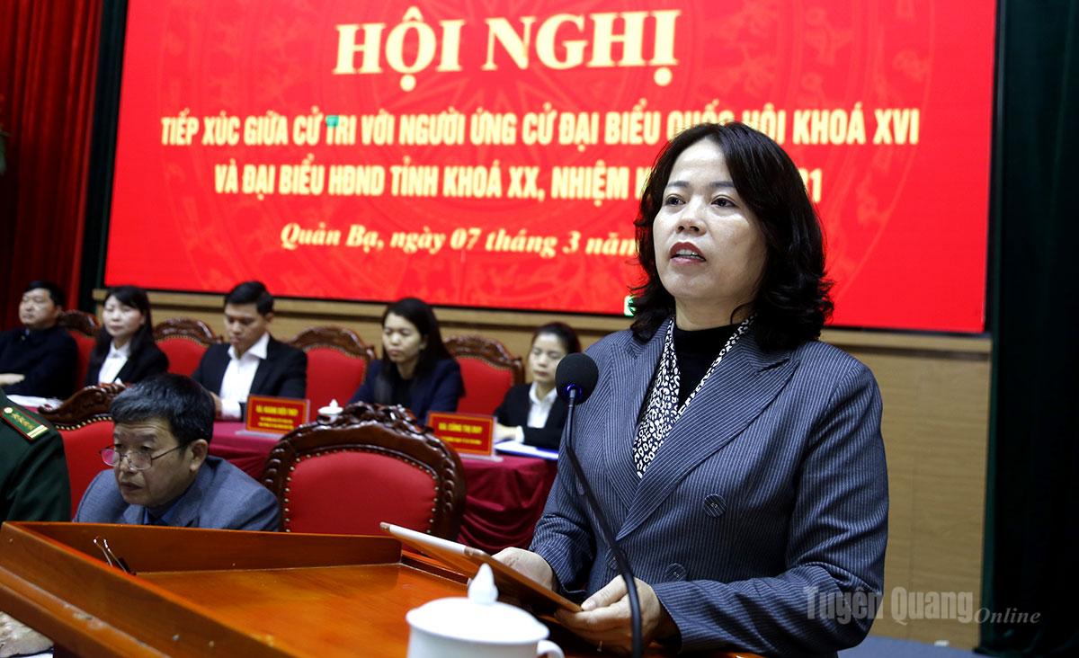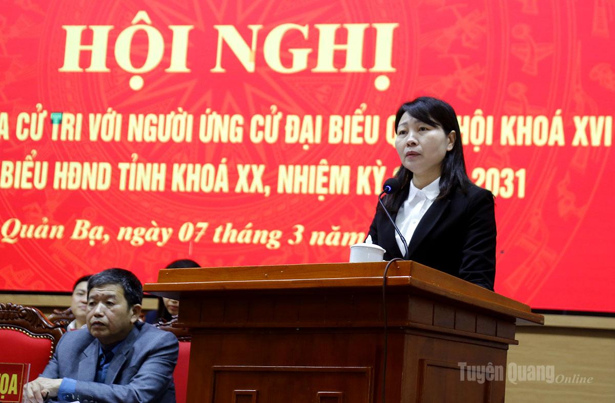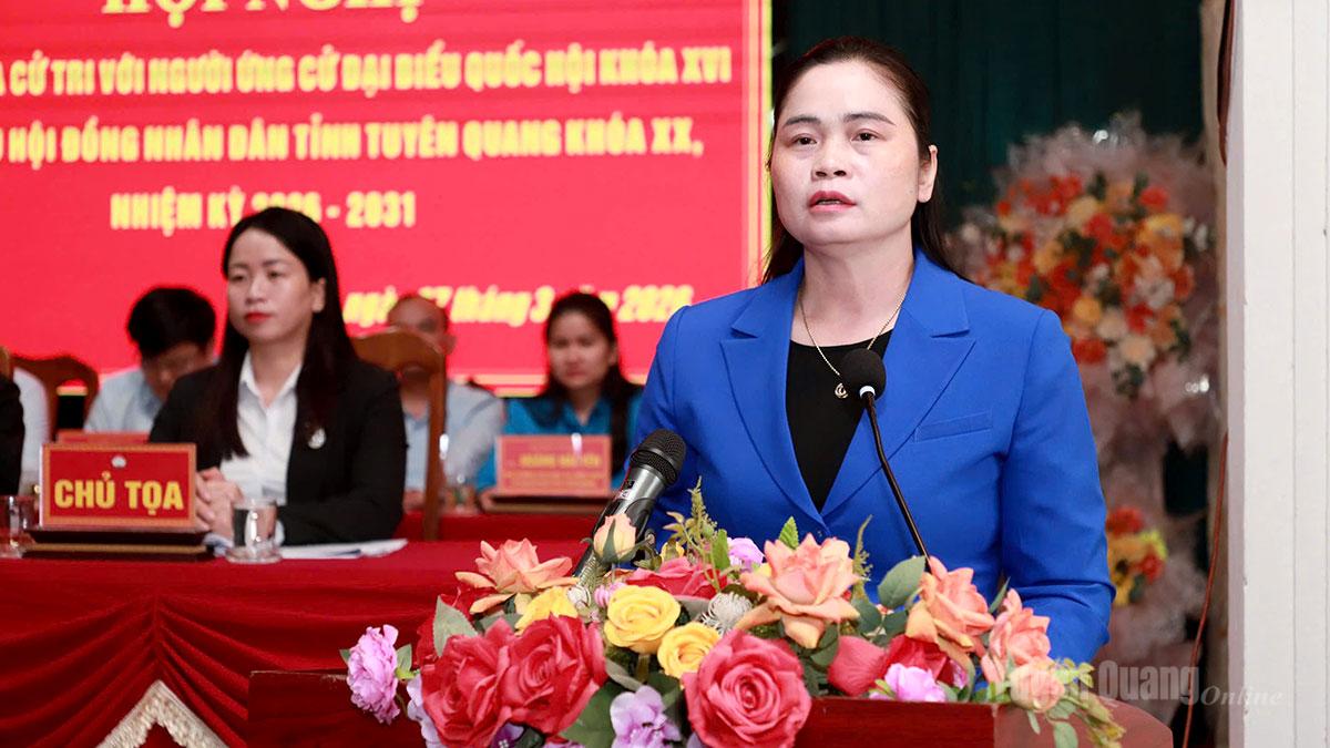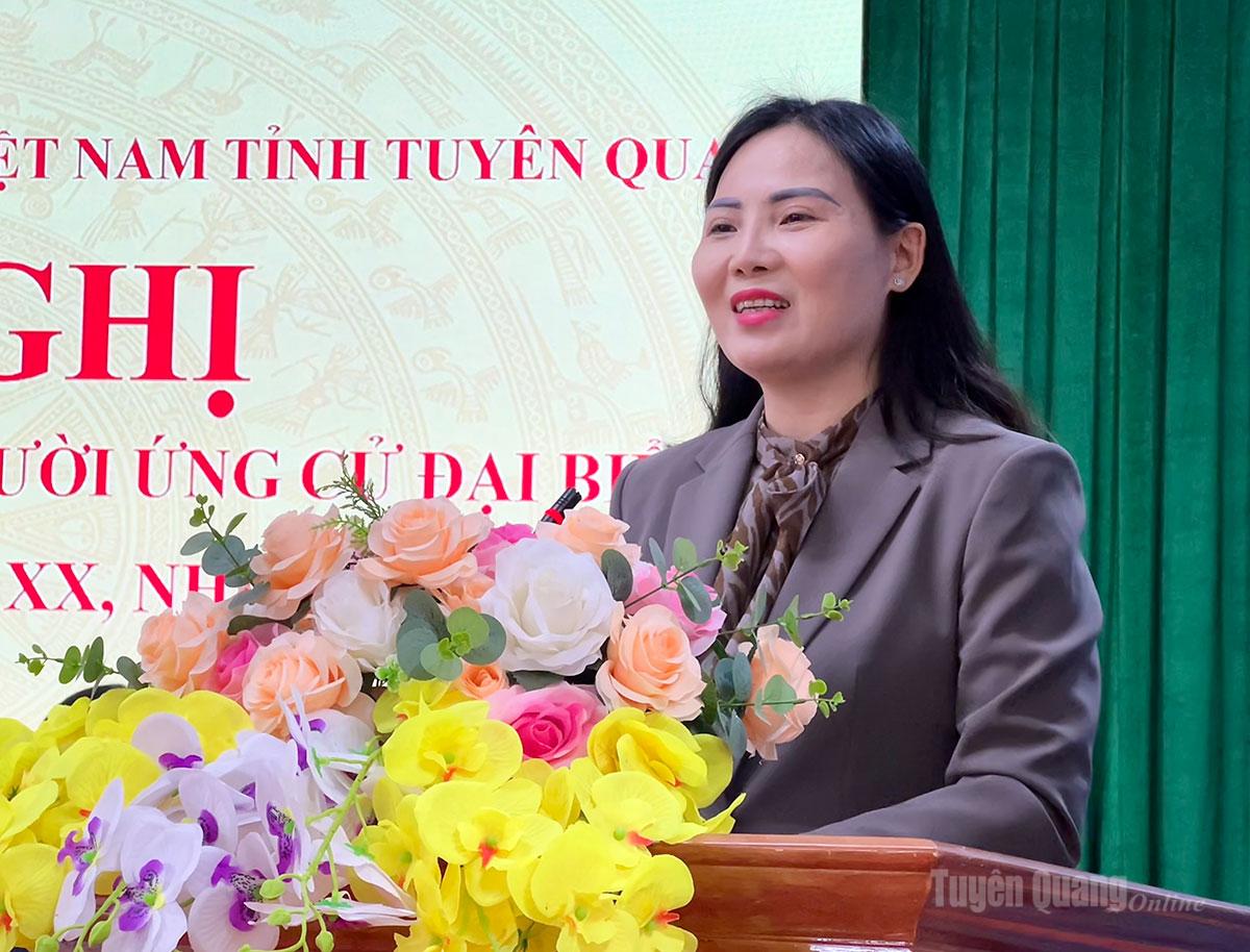 Ứng cử viên Ma Thị Thúy, Ủy viên Ban Chấp hành Đảng bộ tỉnh, Ủy viên Ban chấp hành Đảng bộ các cơ quan Đảng tỉnh Tuyên Quang, Phó Trưởng đoàn đại biểu Quốc hội hoạt động chuyên trách tỉnh Tuyên Quang, Ủy viên Hội đồng Dân tộc của Quốc hội trình bày chương trình hành động cá nhân.