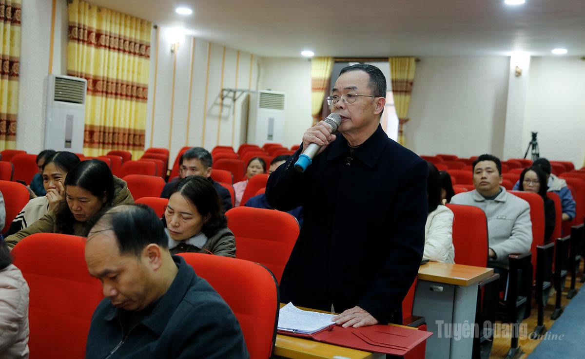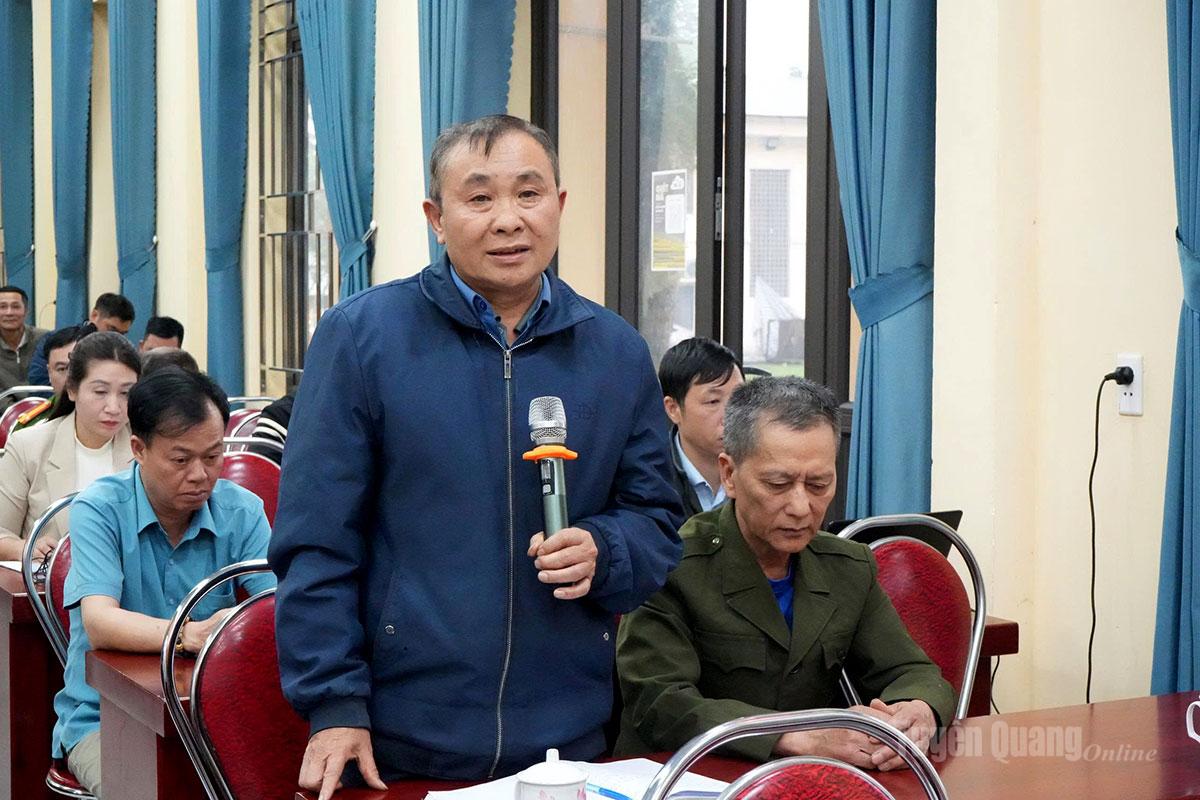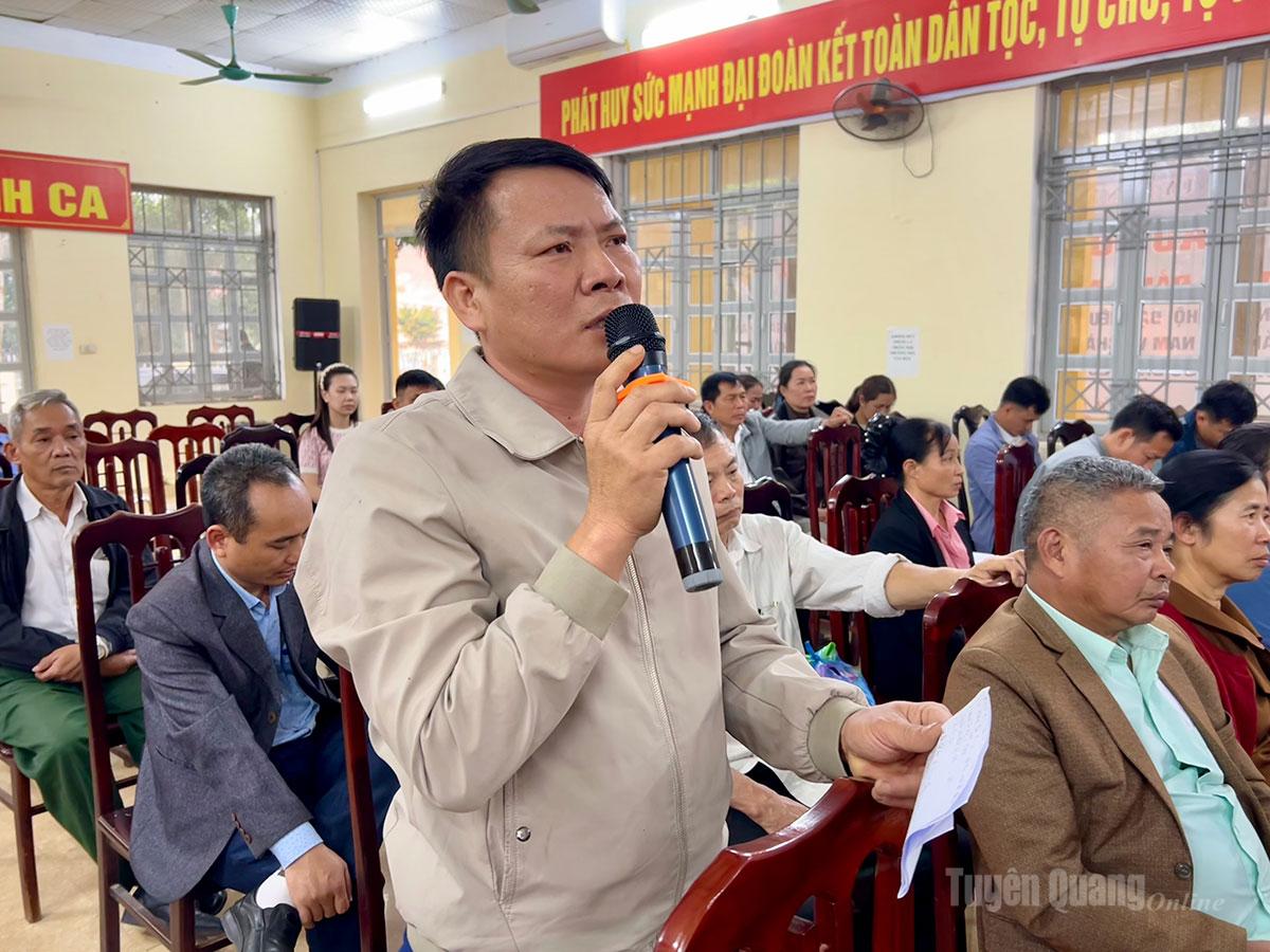 Cử tri xã Tân Quang phát biểu ý kiến tại buổi tiếp xúc.