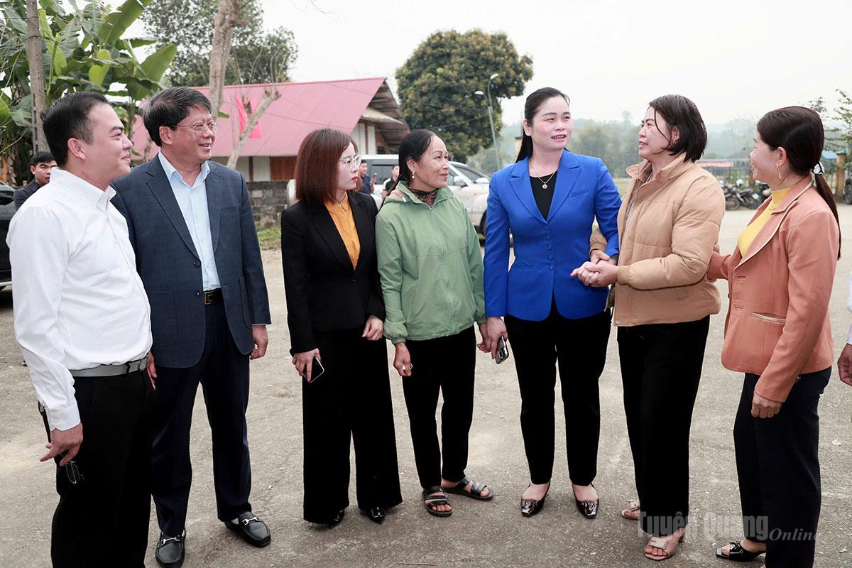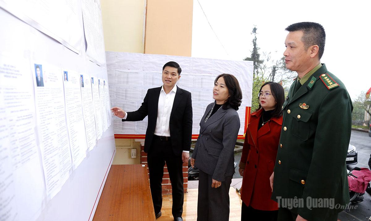 Đồng chí Lý Thị Lan, Ủy viên BTV Tỉnh ủy, Trưởng đoàn ĐBQH hoạt động chuyên trách khóa XV tỉnh Tuyên Quang kiểm tra công tác chuẩn bị bầu cử tại thôn Tam Sơn 1, xã Quản Bạ.