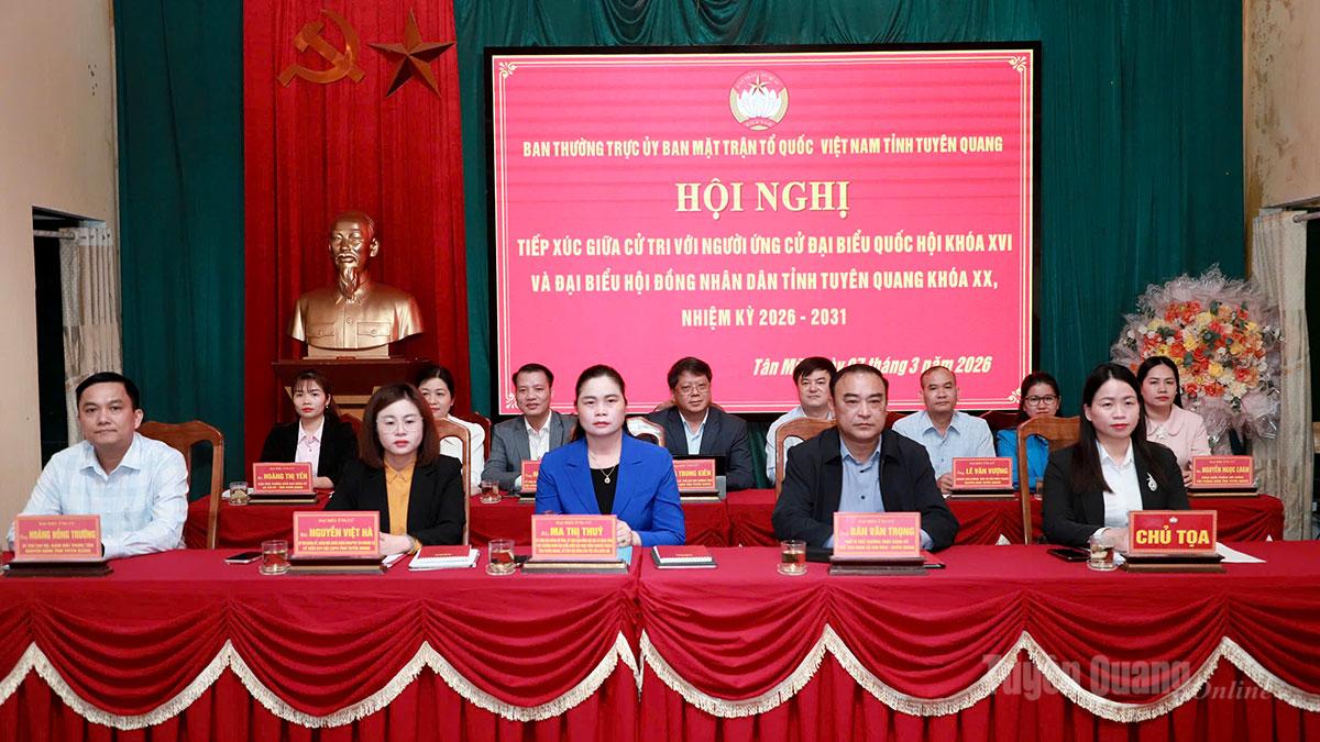 * Chiều 7-3, Ban Thường trực Ủy ban MTTQ Việt Nam tỉnh Tuyên Quang tổ chức hội nghị tiếp xúc cử tri, vận động bầu cử giữa các ứng cử viên đại biểu Quốc hội khóa XVI và đại biểu HĐND tỉnh nhiệm kỳ 2026–2031 với cử tri trên địa bàn xã Quản Bạ.
