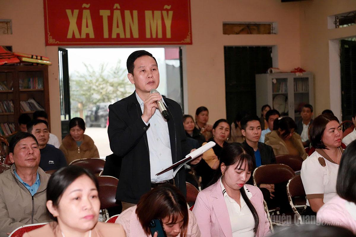 Sau khi nghe các ứng cử viên lần lượt trình bày chương trình hành động. Cử tri xã Tân Mỹ đánh giá cao chương trình hành động của các ứng cử viên. Đồng thời, đề xuất nhiều vấn đề thiết thực như: Trên các lĩnh vực giáo dục, y tế; mở mới và nâng cấp, sửa chữa các tuyến đường; tiếp tục có các chương trình hỗ trợ phát triển kinh tế phù hợp với điều kiện của địa phương; hỗ trợ cho người dân về công tác chuyển đổi số; tạo thêm cơ chế hỗ trợ cho phát triển thế mạnh của địa phương...