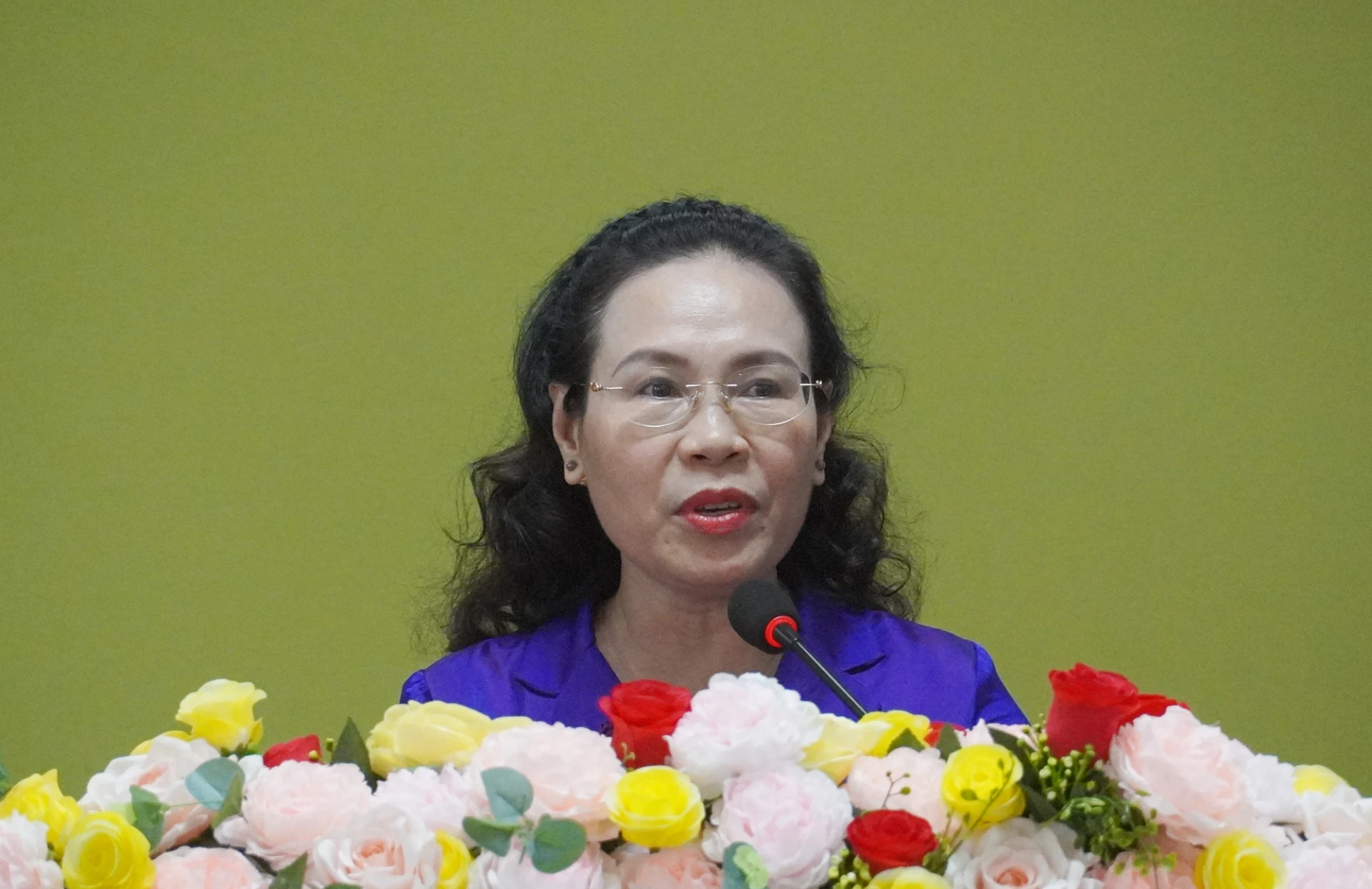 Bà Phạm Thị Hân, Phó Chủ tịch Thường trực HĐND tỉnh trình bày chương trình hành động trước cử tri - Ảnh: X.P