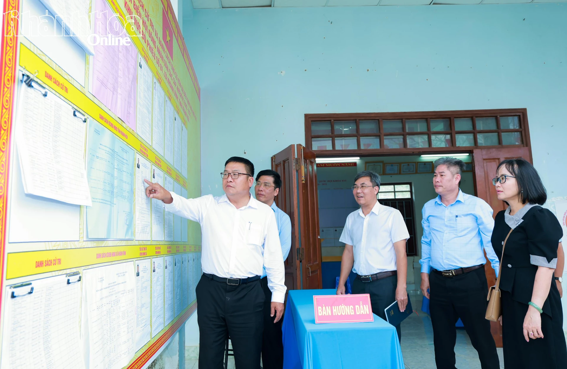 Đồng chí Võ Hoàn Hải kiểm tra công tác chuẩn bị bầu cử tại xã Khánh Vĩnh.