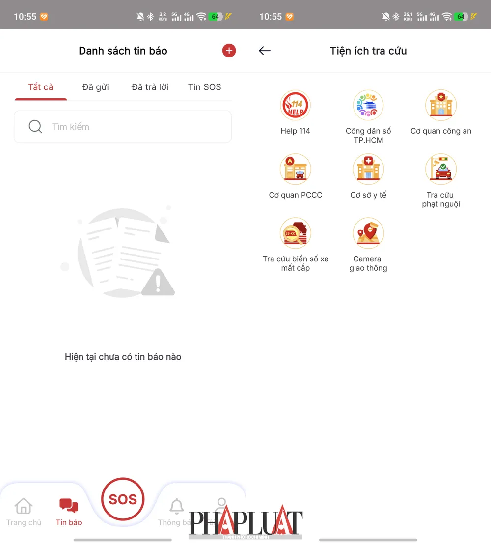 Giao diện ứng dụng SOS An ninh trật tự. Ảnh: MINH HOÀNG