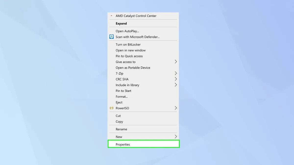 Nhấp chuột phải vào biểu tượng ổ USB, sau đó chọn dòng Properties (Thuộc tính) ở dưới cùng của menu hiện ra.