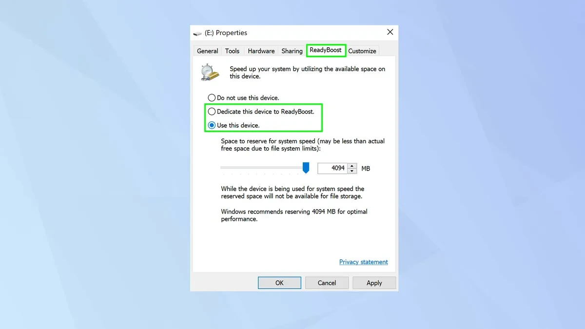 Bước 4: Kích hoạt tính năng ReadyBoost