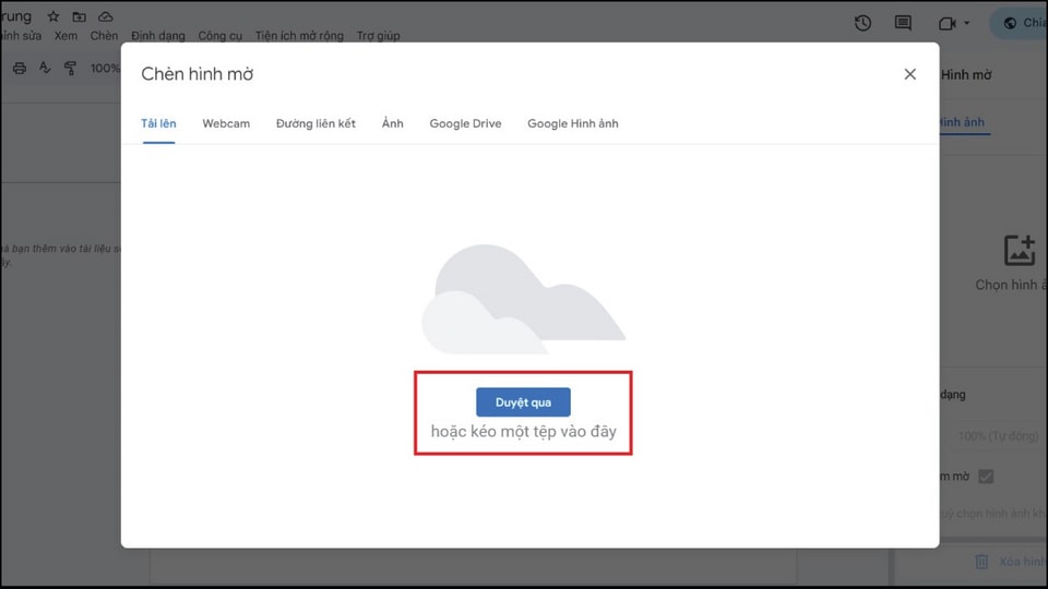 hoặc kéo và thả tệp hình ảnh trực tiếp vào khu vực được chỉ định.