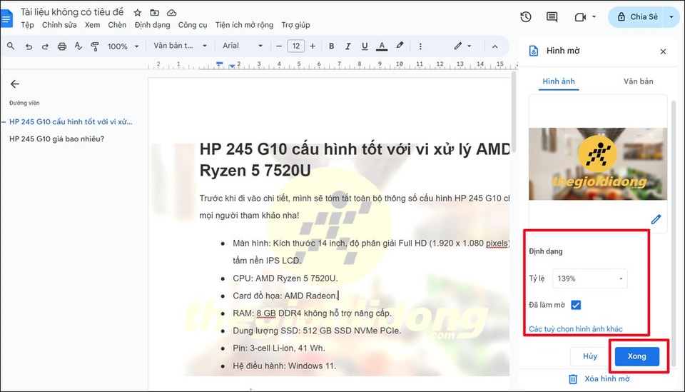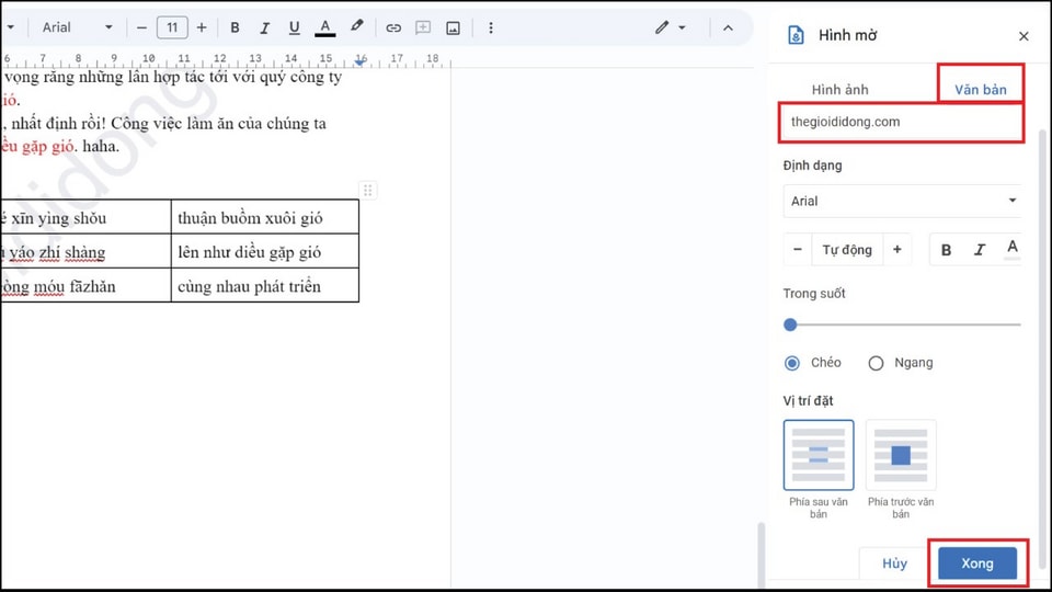 để hình mờ không che khuất nội dung chính. Khi đã hài lòng, nhấn