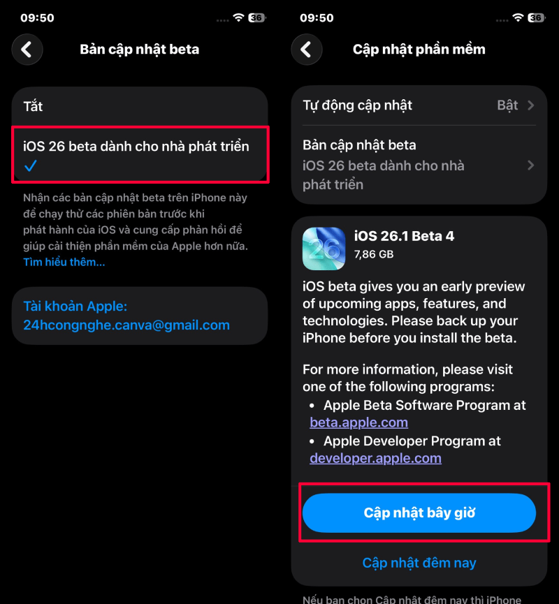 Bước 1: Mở Cài đặt Cài đặt chung Cập nhật phần mềm, sau đó tải và cài đặt iOS 26.1 Beta 4 mới nhất.