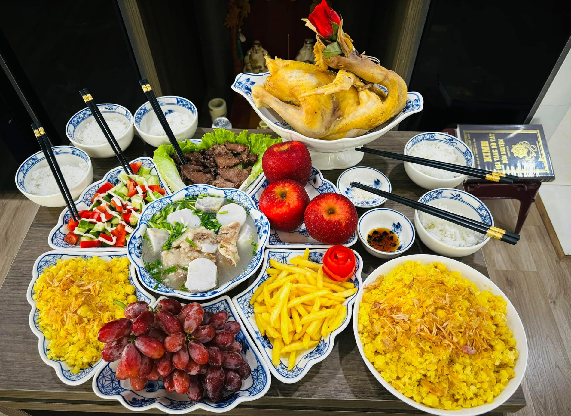 Ngoài những món kể trên, tùy điều kiện mà các gia đình có thể thêm hay thay đổi món khác nhau như: rau xào thập cẩm, canh măng/miến, miến xào mề gà, tôm luộc, chả…