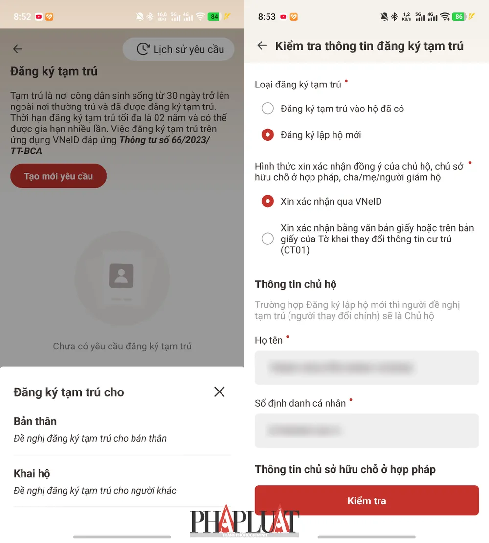 Đăng ký tạm trú trên VNeID. Ảnh: MINH HOÀNG