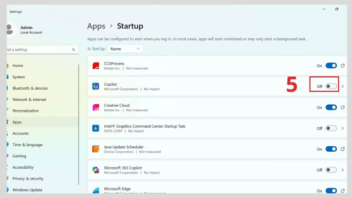 Chuyển ứng dụng muốn tắt sang Off để ngăn khởi động cùng Windows.