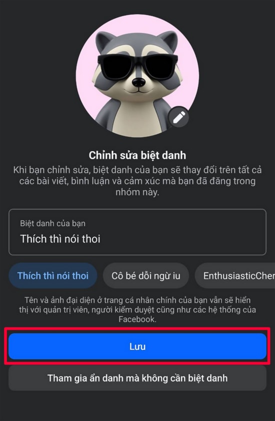 Sau khi đã hoàn tất việc lựa chọn, hãy kiểm tra lại một lần nữa để chắc chắn bạn đã hài lòng với hồ sơ ẩn danh mới của mình. Cuối cùng, nhấn nút "Lưu" để hoàn tất quá trình.