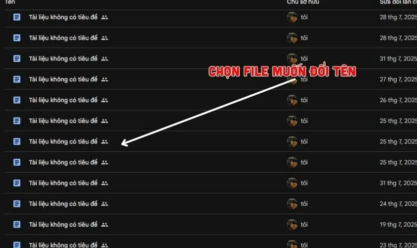 Sử dụng thanh tìm kiếm hoặc duyệt thủ công để tìm file. Nhập tên hiện tại của tài liệu để nhanh chóng định vị đúng file cần đổi.