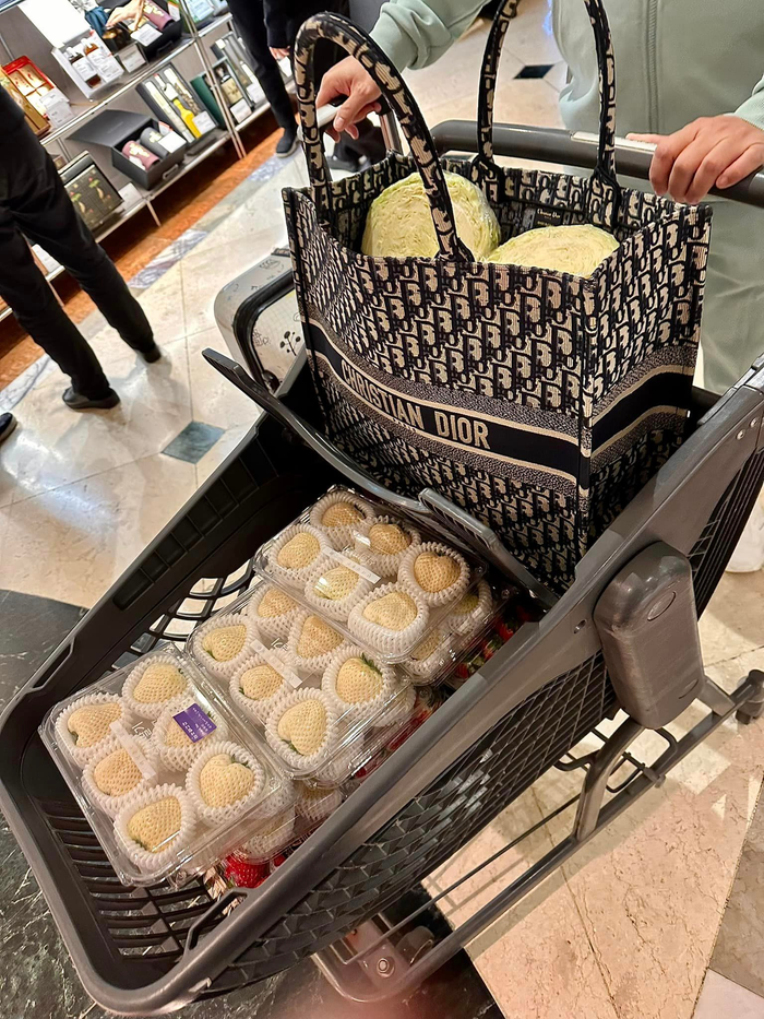 Đoàn Di Băng nổi tiếng với bộ sưu tập túi xách đồ sộ, mỗi chiếc có giá từ trăm triệu đến hơn 1 tỷ đồng, trong đó có chiếc túi Dior Book Tote nổi tiếng. Nhưng điều khiến dân mạng “choáng váng” chính là việc cô dùng chiếc túi Dior Book Tote trị giá gần 100 triệu đồng chỉ để đựng rau củ, cụ thể là bắp cải.