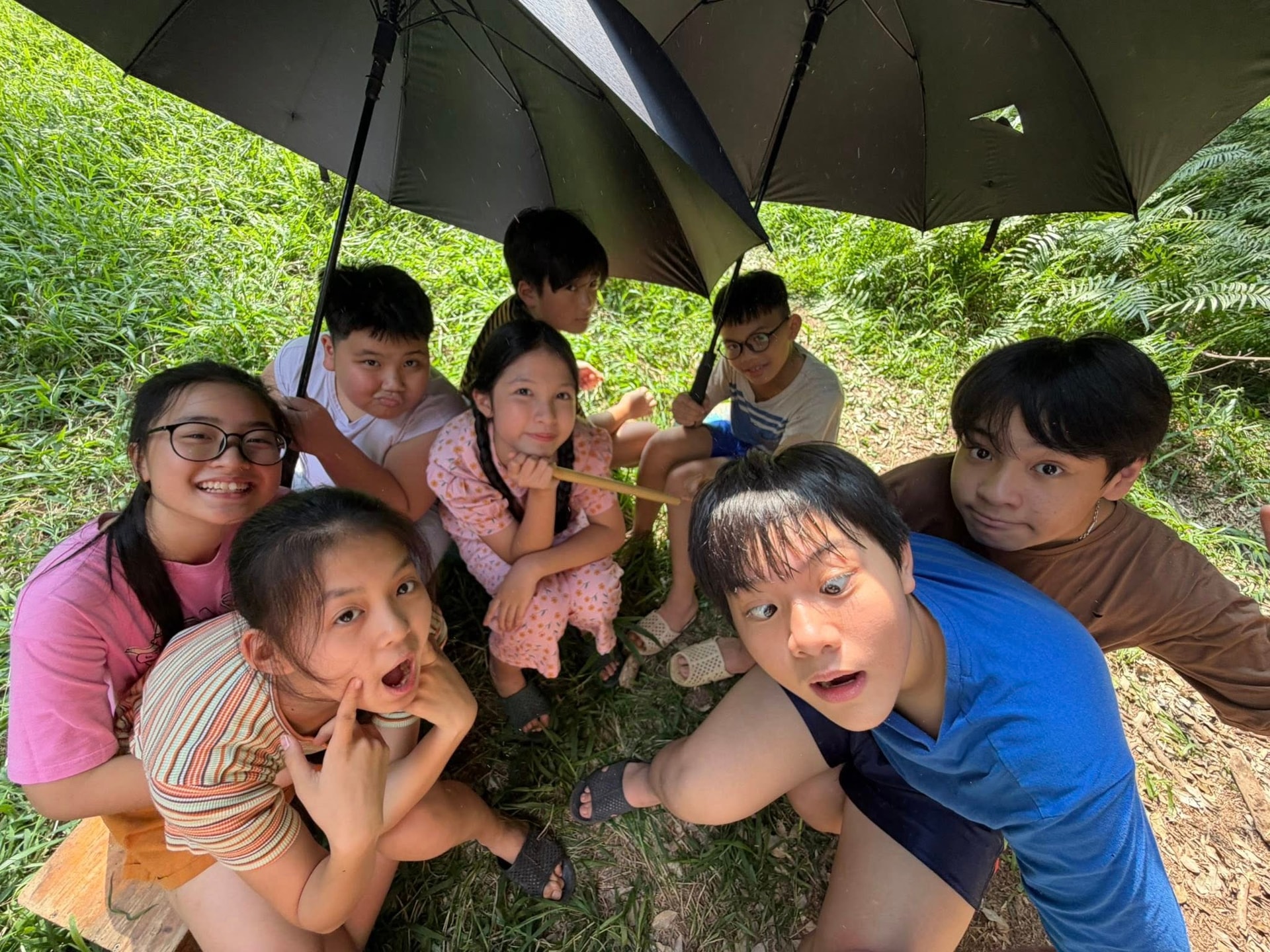 Các diễn viên nhí tạo dáng tinh nghịch trong quá trình ghi hình.