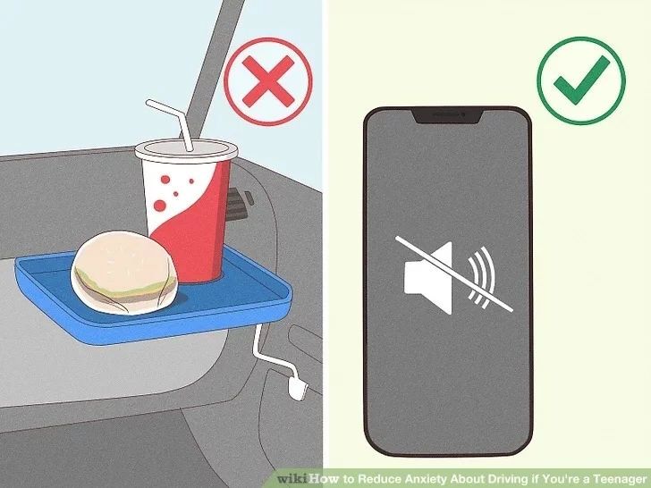 Điện thoại, thức ăn hoặc âm thanh quá lớn có thể khiến bạn mất tập trung và làm tăng cảm giác lo lắng. Hãy để điện thoại ở chế độ im lặng và chỉ sử dụng khi xe đã dừng an toàn. Trong giai đoạn mới lái, nên hạn chế nghe nhạc để tập trung quan sát đường và các phương tiện xung quanh.