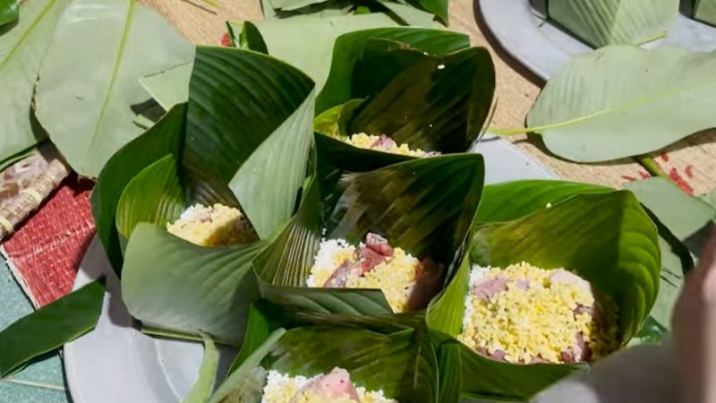 Để tăng độ dẻo dai, có thể phơi lá ở nơi thoáng gió hoặc hơ nhanh qua lửa. Thao tác này giúp lá mềm hơn, hạn chế rách khi gói.
