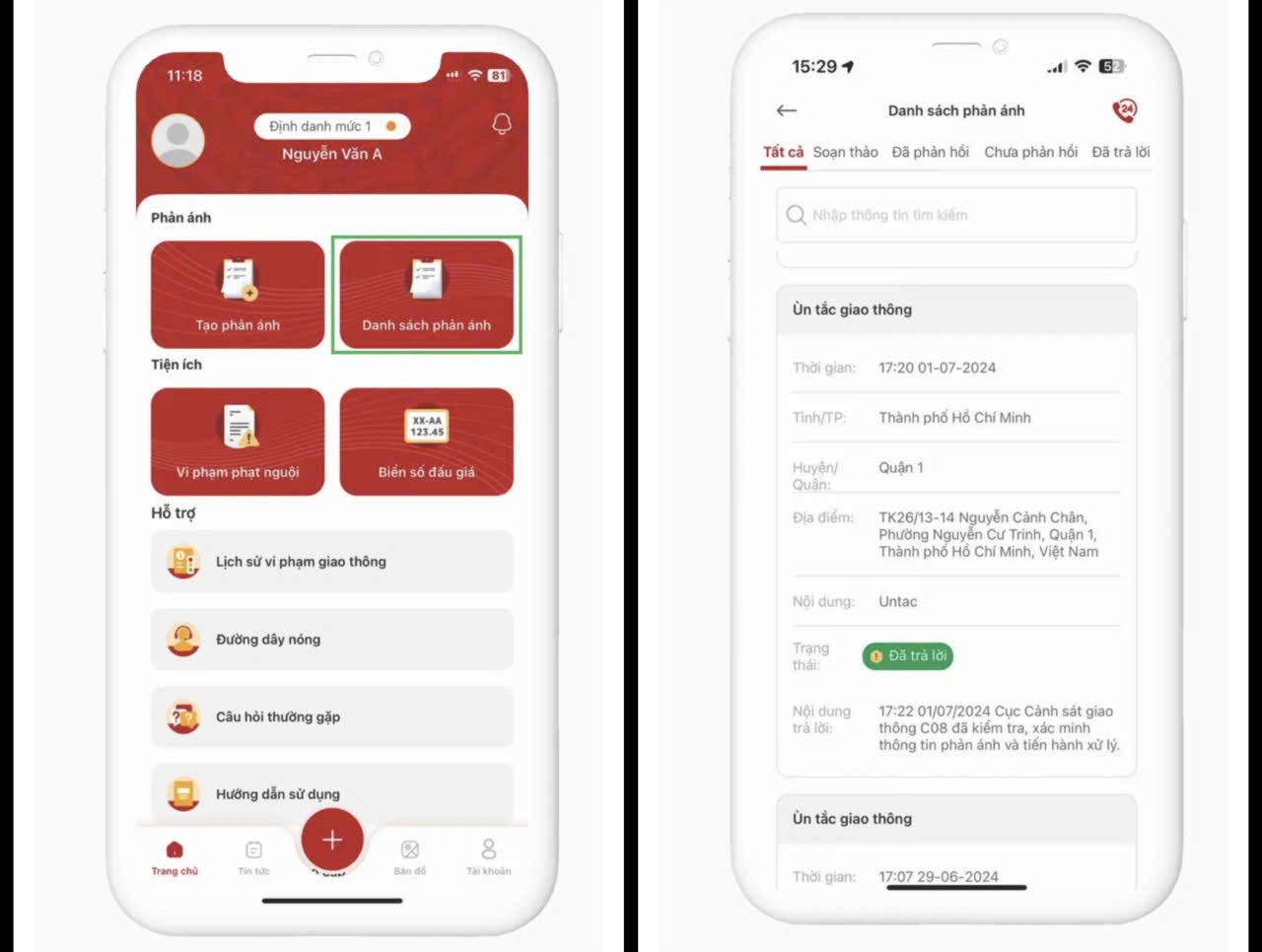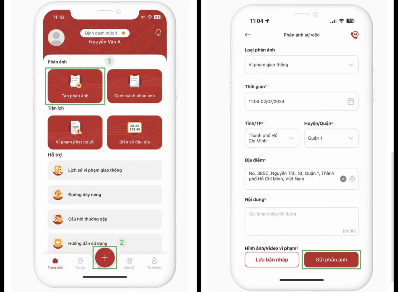 Trên ứng dụng VNeTraffic, ngoài các tính năng tra cứu thông tin phương tiện, ví giấy tờ, tra cứu vi phạm phạt nguội,... thì người dùng còn có thể gửi phản ánh các tình huống vi phạm giao tới cơ quan chức năng xác minh, xử lý.