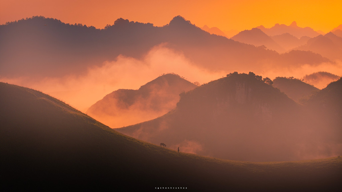 Nếu như vùng Tây Bắc nổi tiếng với những biển mây hùng vĩ, thì Cao Bằng lại sở hữu một điểm săn mây ít ai biết nhưng đẹp không kém đó là đồi cỏ Ba Quáng, còn được gọi là đồi cỏ Vinh Quý. Ảnh Thế Kiệt