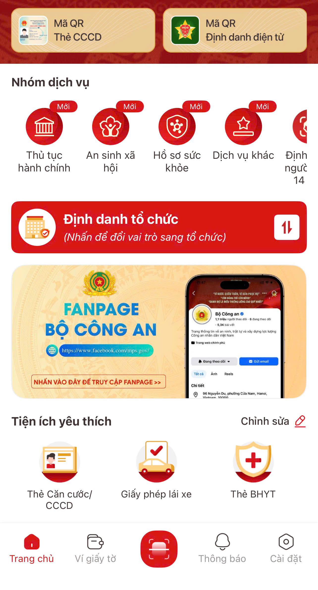 Bước 1: Đăng nhập tài khoản VNeID (yêu cầu định danh mức 2), sau đó chọn mục Ví giấy tờ trên giao diện chính.