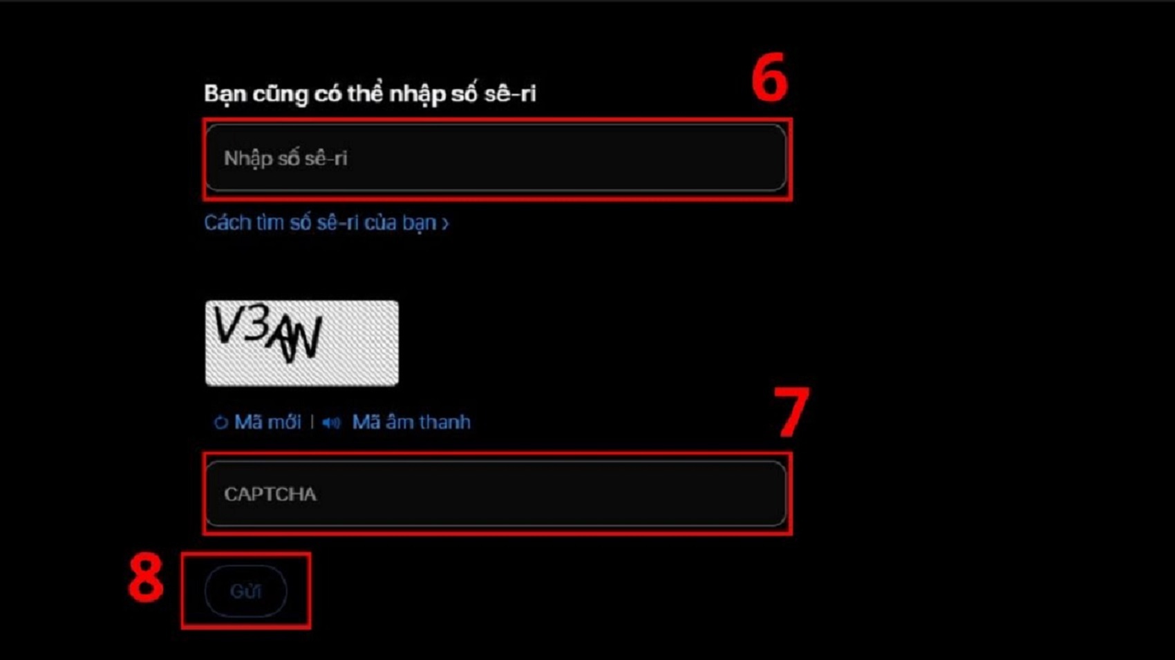 Nhập số sê-ri và mã xác thực theo yêu cầu.